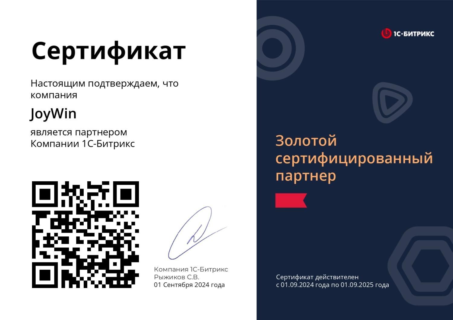 Золотой сертифицированный партнер обладает богатым опытом разработки веб-проектов, в том числе сложных программных решений на основе «1С-Битрикс: Управление сайтом». Наши сотрудники успешно прошли все имеющиеся учебные курсы, сдали тесты и получили сертификаты специалистов. Золотой сертифицированный партнер обладает большим количеством крупных и средних проектов, разработанных на основе продукта.