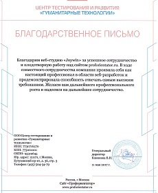 ЦТР «Гуманитарные технологии» выражает искреннюю благодарность веб-студии JoyWin за плодотворное сотрудничество, которое длится уже несколько лет. За это время было создано два масштабных проекта, на регулярной основе проводятся работы по отдельным задачам.